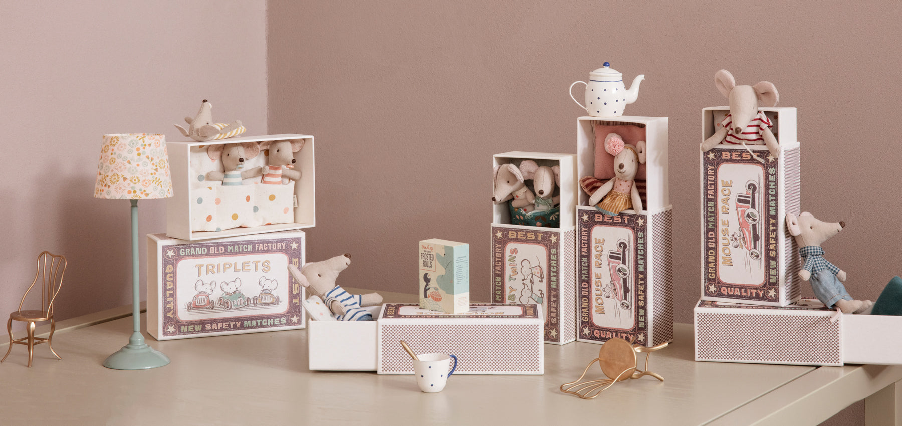 Olemme ylpeitä voidessamme tarjota tanskalaisen Maileg brändin tuotteita, joka on tunnettu ihastuttavista ja laadukkaista leluista! Täältä löydät suuren valikoiman pupuja, hiiriä, leluja, pienikokoisia huonekaluja ym. Tervetuloa tutustumaan Mailegin leluihin verkkokaupassamme!