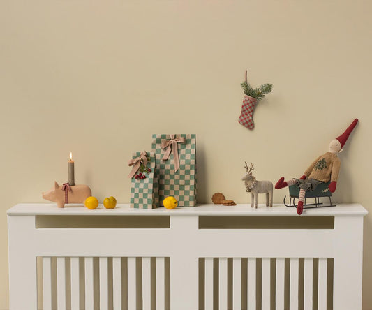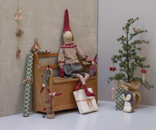 Mailegin joulukokoelmasta löytyy monenlaisia joulukoristeita ja suuri valikoima niistä löydät täältä meidän nettikaupasta. Käytä Mailegin metalli- ja kangaskoristeita joulupuussa, joulukalenterissa tai joululahjan paketoinissa.
